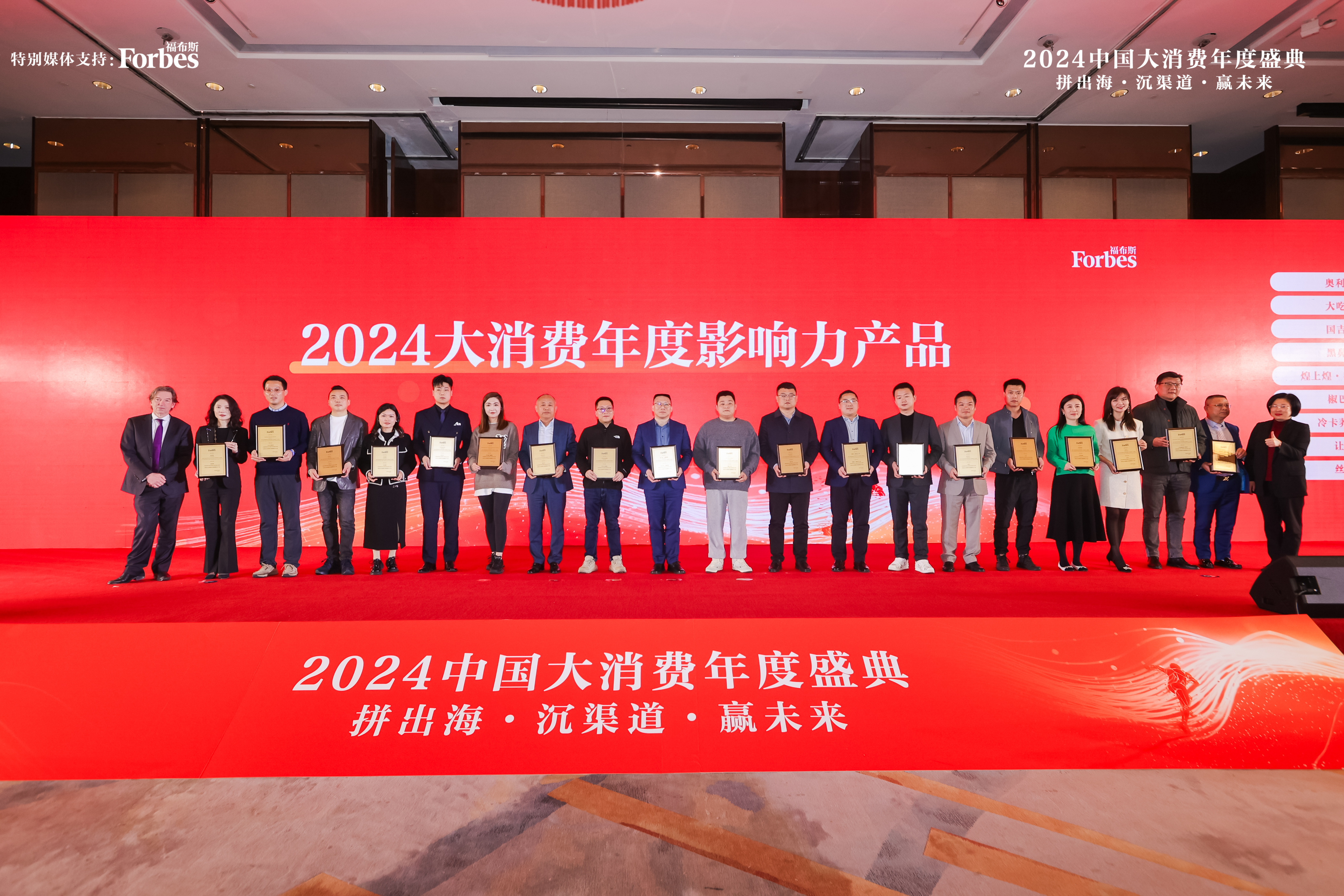 3月8日,福布斯2024中國大消費年度盛典在上海舉行。會上,公布了2024大消費年度領軍人物、2024大消費年度價值企業、2024大消費年度影響力產品等行業類獎項。其中,煌上煌手撕醬鴨和真真老老非遺大師粽獲得“2024大消費年度影響力產品”獎項,由福布斯中國集團首席戰略官晏格文親自頒發。煌上煌股份公司副總經理范旭明出席參會。