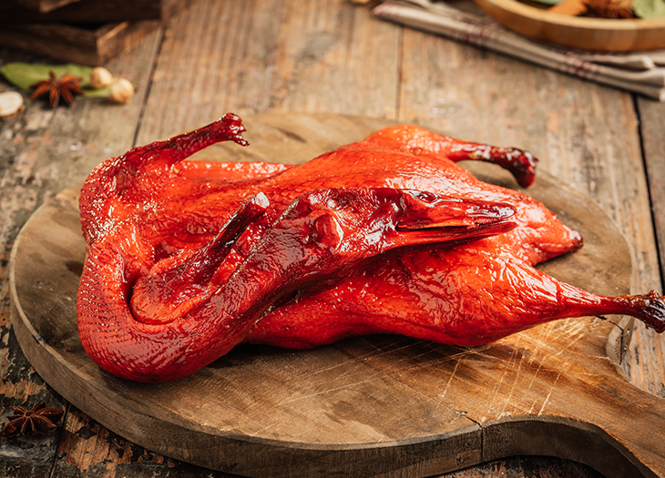產(chǎn)品介紹:精選1000克左右的鮮凍白條鴨,摘凈殘毛和內(nèi)腔異物,采用多種調(diào)味料和香料腌漬調(diào)理,產(chǎn)品經(jīng)烘烤、醬制而成。產(chǎn)品色澤金黃,皮脆肉酥,富有濃郁的臘香風(fēng)味。因其形狀相似琵琶,醬制而成,故取名琵琶醬鴨,是煌上煌醬鴨品系的另一種特色產(chǎn)品。